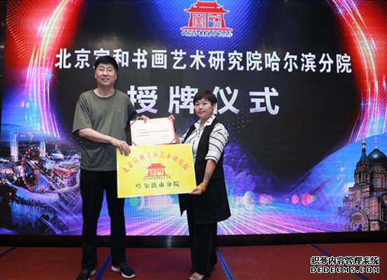 北京宣和书画艺术研究院顾问马建国将军为哈尔滨分院颁发牌匾