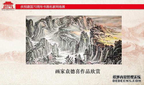 袁德喜,笔名亢龙无悔,湖北省鄂州人,国家一级美术师,高级雕塑工艺师。1964年出生在文武世家,从小喜欢绘画,泥 塑,武术。大学毕业,现 为中央电视台教育台水墨丹青画院画家,中国国画创作研究院理士!一带一路辉煌中国推荐艺术家,荣获“最具实力派艺术家”荣誉称号!“中国最受欢迎艺术家称号!”作品曾入选中国国际集邮网。邮品在美国,法国,匈牙利,意大利,印尼,日本发行!《大国掘起》《人民美术》《一带一路大型画册》《香港苏富比特画报》人民代表报! 山水《大画家》袁德喜,由天津人民出版社出版,全国新华书店总经销。澳大利亚悉尼书画院特邀艺术家!中澳双城展获优秀奖!袁德喜先生现任众通社研究院院士,进而弘扬传统文化的理念,一直以来,袁德喜先生在全国各地绘画 、雕塑,作品随足迹遍布全国各地。2017年5月湖北鄂州市美术馆办个人画展。他一生追求宁静、纯洁、 世外桃源无极山水禅的意境,以山水创作为主,彰显与世无争的独特风格,其作品深受到国内外专家一 致好评,并定期举办艺术家交流会、展览、笔会写生、艺术之旅、研讨会等,让艺术家在研究院互相交 流,互相学习。