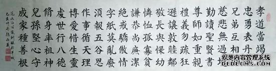 退伍回乡后,在繁重的生产劳中,也从未间断书法的练习,在条件极其艰苦的条件下,然用废报纸低质墨反复临帖。其间曾多次求教于我县老一辈书家李昭曾先生和我临近县的固始人,曾被张海先生称为:书法泰斗的李乾山老先生。因此我的楷书得体于颜,立形于柳,得意于欧。隶书求古而不泥古,自出新意。其作品多次在全国各类大展赛中入展并获奖,二00六年隶书作品入编浙江省《儒商墨缘》,二00七楷书作品入展山西省永乐宫并获三等奖,二00八年入编北京长城书画院为庆祝奥运会开幕式,举办的2008米书画长卷,二0一0年其隶书作品入展无锡市沈鹏艺术馆,多次入展河南省群众书展并获奖。