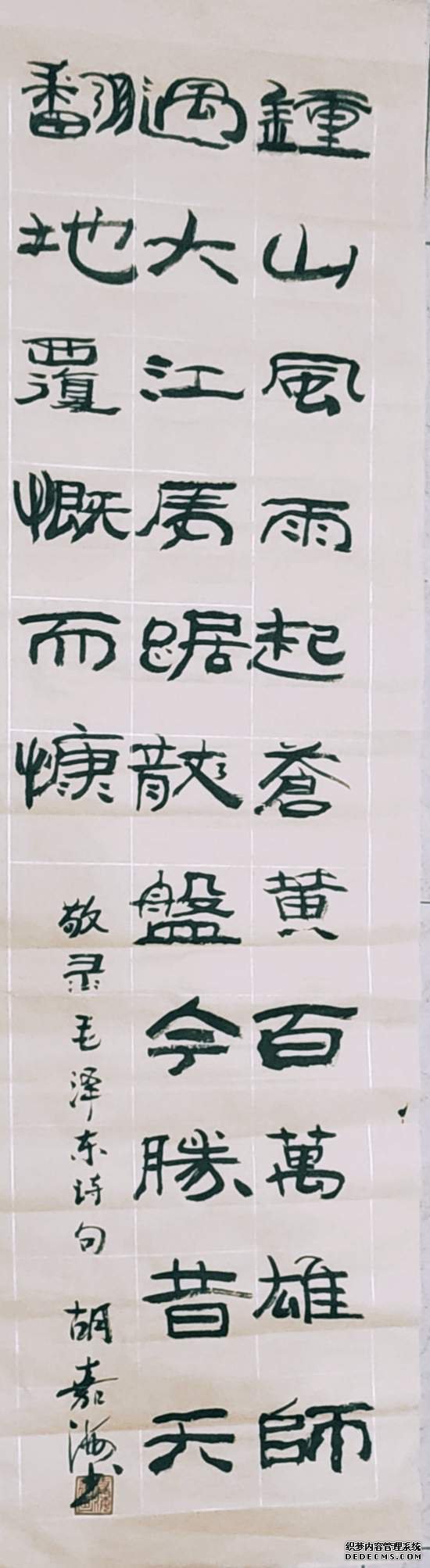 自幼喜爱书画,尤其沉迷于书法艺术,初学颜真卿真书,后临习石门铭、石门颂、泰山经石峪、张迁碑、曹全碑、史晨碑等诸种隶书和汉简。