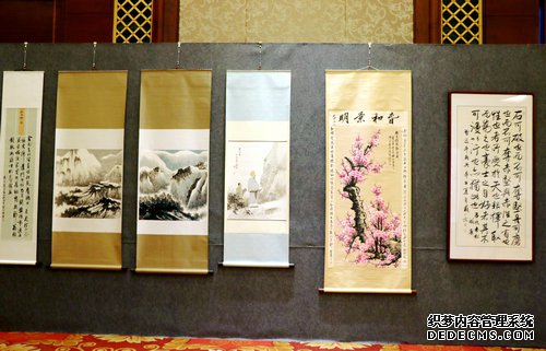 当原吉安市市委常委郭庆亮宣布书画展开幕后,各位领导嘉宾在组委会工作人员的带领下,王云鹏先生的陪同下移步展厅开始参观展览。