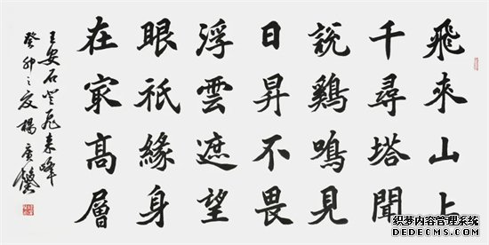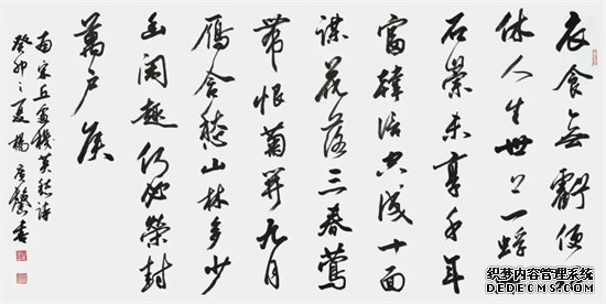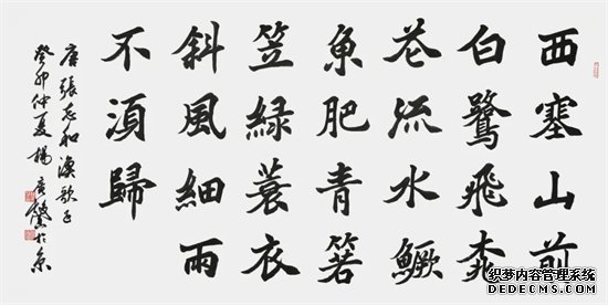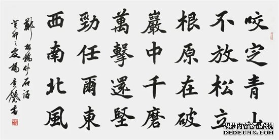 随着社会发展节奏的加快,我们当下的书写形式、书体风格、书写体验也发生了很大的不同,笔墨当随时代,书法艺术和书写内容的演变,契合当下的社会发展也是不可回避的现实,艺术要为国家和人民服务也成为书法家义不容辞的责任。对此,杨广馨先生说,近年来,习近平总书记在系列重要讲话中多处引经据典,生动传神,寓意深邃,如“苟日新,日日新,又日新”、“功崇惟志,业广惟勤”等经典语句,对我们极具启迪意义。人民日报社还特别组织编写了《习近平用典》一书,从敬民、为政、立德到修身、笃行、劝学等方面,对国家治理、为官为政,乃至人们的自我提升都提出了指导方向。那么书法家在书写传统唐诗宋词的基础上,能否通过书写这些经典来辅助人们去领略传统文化的精髓和魅力呢?其次,书法艺术也要进入百姓生活,一幅书法就可以成为艺术和普通市民的连接纽带,实现互相熏陶,提高审美层次。“书法不能是高高在上的艺术,而是顺应时代需求、百姓需求,反映当下生活状态的重要依托。”
