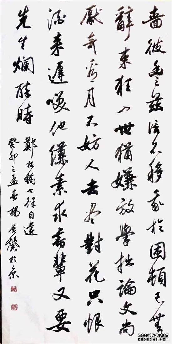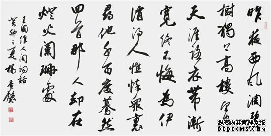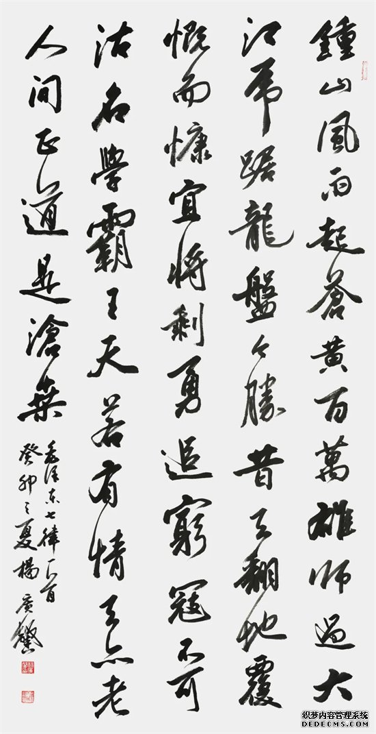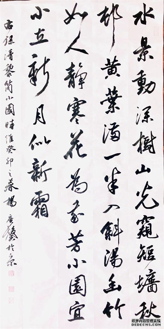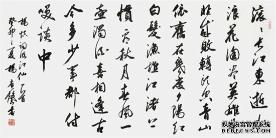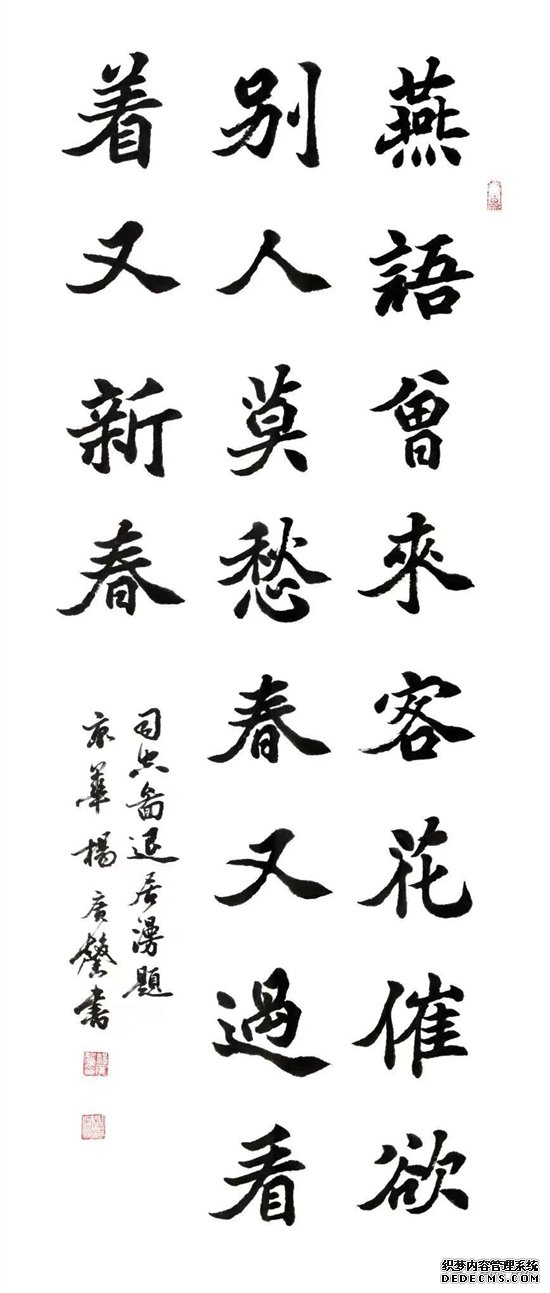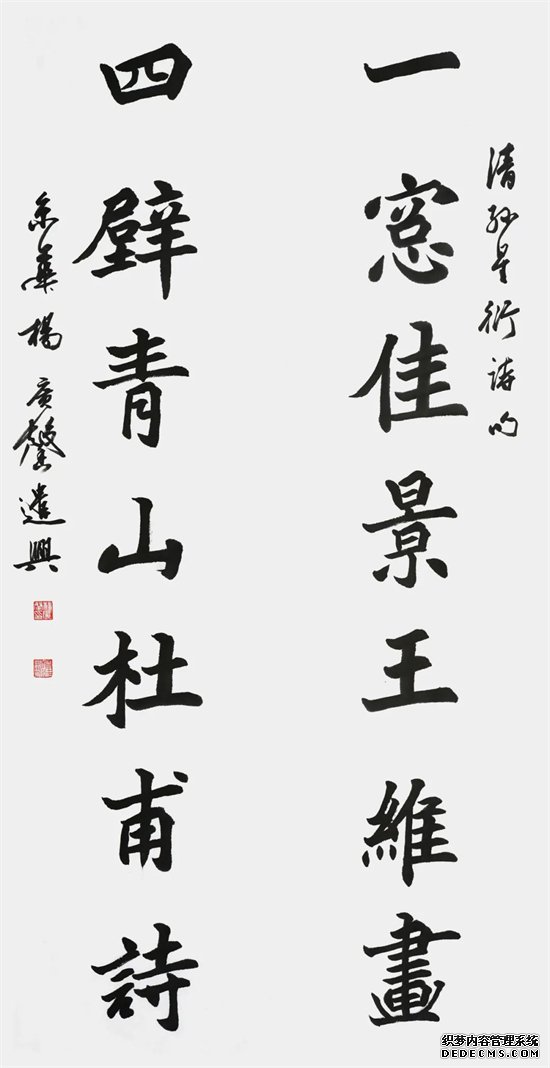 纵观杨先生的大量书作,既严谨又真率,既有法又无羁,尽管感情充沛,张力弥漫,却不恣意宣泄,外露气势。他认为:“当下书法家要始终以弘扬正统书风为己任,抵制狂怪,拒绝丑陋。当下充斥着的很多书写“花样”都是丑书、怪书、花拳绣腿,不但不严肃的对待和尊重书法艺术,还去丑化和戏弄传统文化,作为一个有担当的书法家,要摒弃那些歪门邪道,弘扬和倡导正能量。”在杨先生看来,除了对书法美学、书法史、碑帖研究、书学杂识的学习外,文学、音乐、建筑、佛教都是滋养书法艺术的重要门类,“书法不是写字匠,不断增强艺术修养,学习提升自己的文化内涵,才能不断突破艺术的模式化、套路化,从而实现艺术面貌的不断创新。”