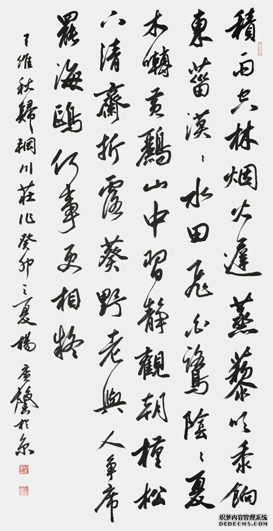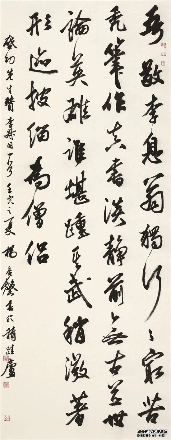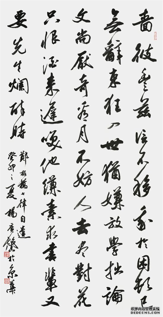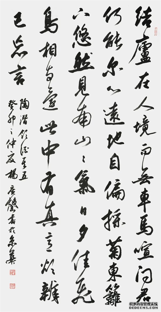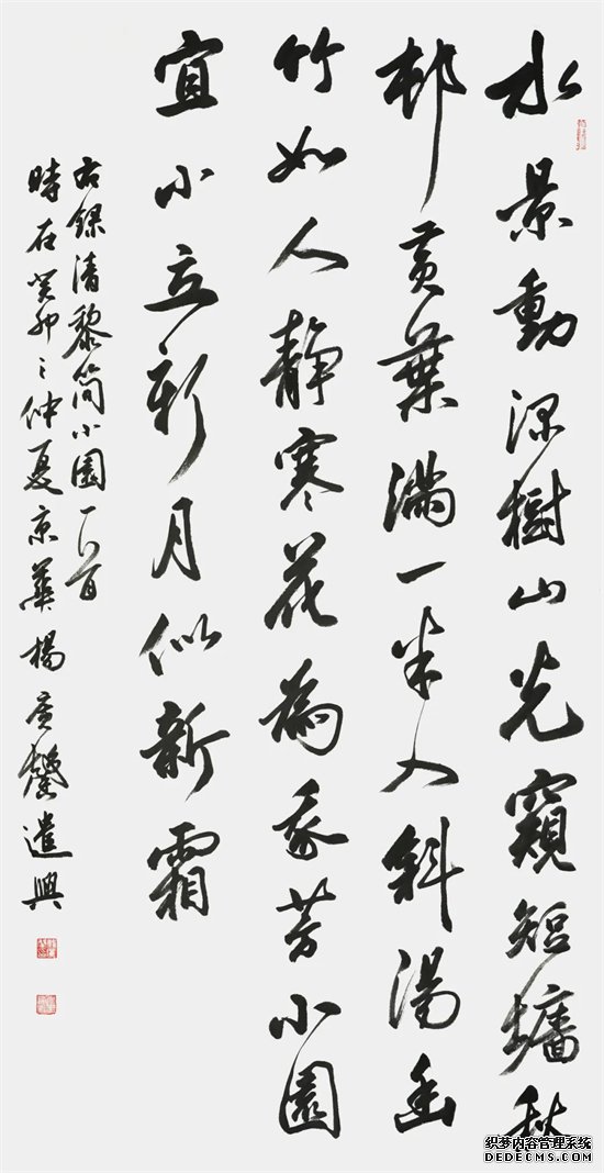 纵观杨先生的大量书作,既严谨又真率,既有法又无羁,尽管感情充沛,张力弥漫,却不恣意宣泄,外露气势。他认为:“当下书法家要始终以弘扬正统书风为己任,抵制狂怪,拒绝丑陋。当下充斥着的很多书写“花样”都是丑书、怪书、花拳绣腿,不但不严肃的对待和尊重书法艺术,还去丑化和戏弄传统文化,作为一个有担当的书法家,要摒弃那些歪门邪道,弘扬和倡导正能量。”在杨先生看来,除了对书法美学、书法史、碑帖研究、书学杂识的学习外,文学、音乐、建筑、佛教都是滋养书法艺术的重要门类,“书法不是写字匠,不断增强艺术修养,学习提升自己的文化内涵,才能不断突破艺术的模式化、套路化,从而实现艺术面貌的不断创新。”