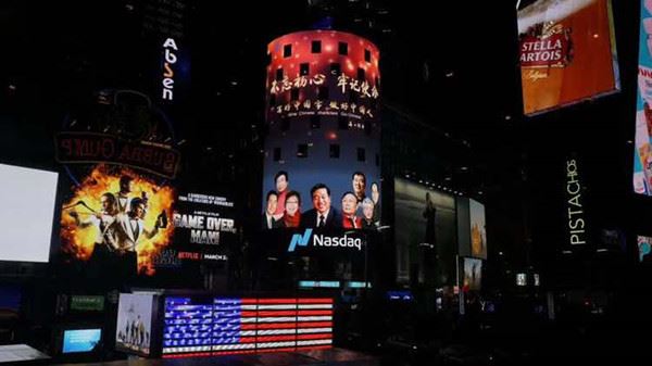 中国公益在线讯(公益记者 杜海义 俞泽健)2018年3月16-17两日(美国当地时间),一幅《不忘初心牢记使命-写好中国字 做好中国人》海报在美国纽约时代广场与百老汇大街43街纳斯达克大屏幕闪亮登场。这是自2017年2月27日《写好中国字 做好中国人》海报刊登以来的再次发布。也是有史以来,中国书法家们首次集体向世界推广中国的汉字文化,书写艺术。